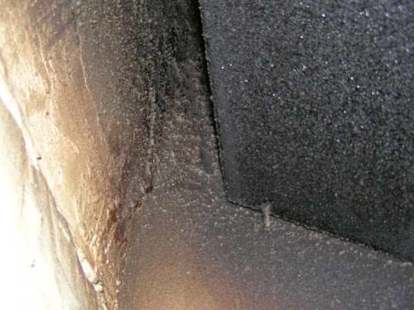 El problema que yo detecté, fue que si ese saliente lo hacía de obra (con ladrillos), me sería imposible desatascar la chimenea en un momento dado o limpiarla adecuadamente. Por ello lo que hice fue colocar una chapa de hierro que tapara el hueco. La colocación de esta chapa se hizo sobre unos tacos de acero de tal forma que entre el frontal de la chimenea y la chapa, quedara un hueco de unos 10 a 12 cm. Por ese hueco debía salir todo el humo.