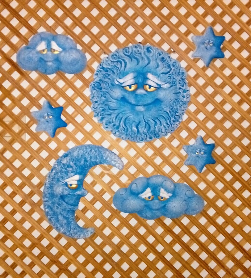 CONJUNTO COMPLETO COMPUESTO POR 1 SOL+1 LUNA+1 NUBE GRANDE+1 NUBE PEQUEÑA Y 3 ESTRELLAS DE REGALO