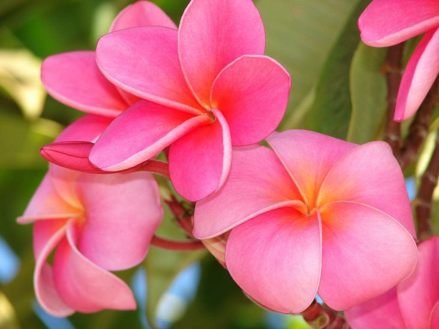 Las plumerias son arbustos de porte mediano, llegando a medir unos 10 metros de altura, que necesitan una exposición plena al sol. A pesar de ser una planta exótica, admite temperaturas un poco más bajas que las anteriores (5ºC mínimo) y las máximas oscilarán entre los 15 y los 20ºC. Lo que no podemos pasar es la circulación del aire, debemos asegurar una buena ventilación. El drenaje es muy importante para mantener una humedad elevada en el sustrato evitando encharcamientos y, de esta forma, enfermedades. Aunque dejaremos que se seque la tierra, en verano y primavera el riego debe ser generoso. Si el verano es demasiado caluroso, añadiremos mantillo al sustrato. En otoño, la planta adquirirá una tonalidad amarillenta y perderá las hojas, entonces espaciaremos el riego progresivamente hasta su completa anulación. El abono también es muy importante: cada dos semanas en el agua del riego a lo largo del verano. No necesita podas, aunque siempre tenemos que eliminar ramas, hojas o flores dañadas o enfermas. Si el tamaño de nuestra planta es excesivo y queremos reducirlo, entonces podremos cortar las ramas altas (cuidado con el líquido lechoso que brota de ella, es tóxico). Por último, anotad que deberéis trasplantar vuestra plumeria todos los años o sustituir la parte superior del sustrato al menos.