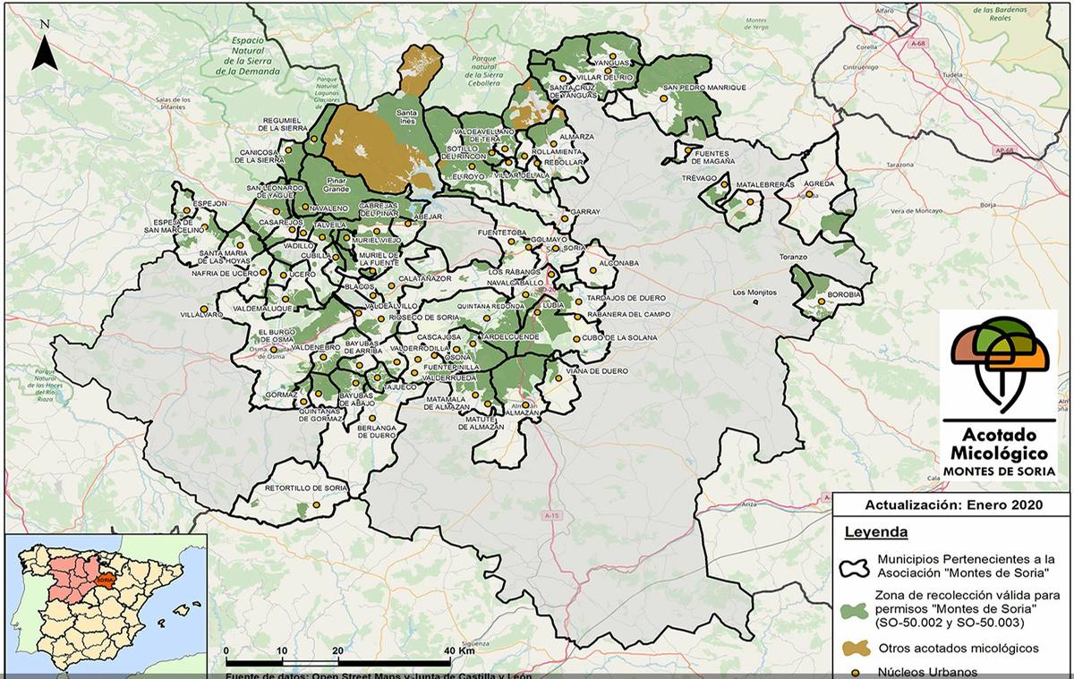 Los permisos que ahora se expiden permitirán recolectar, en la modalidad de temporada, hasta el 31 de diciembre de 2020 en las 152.500 hectáreas agrupadas en los acotados Montes de Soria SO-50002 y Montes Comunidad de Castilla y León en Soria SO-50003, conformando la mayor zona regulada de Castilla y León. Esta superficie pertenece a 74 entidades propietarias de 256 montes, ya que se mantiene el acuerdo de reconocimiento mutuo, firmado en otoño de 2018 entre ambos acotados, por el cual sus respectivos permisos son válidos en ambas superficies, trabajando de forma conjunta y coordinada en las diferentes acciones que desarrollen durante la campaña micológica.