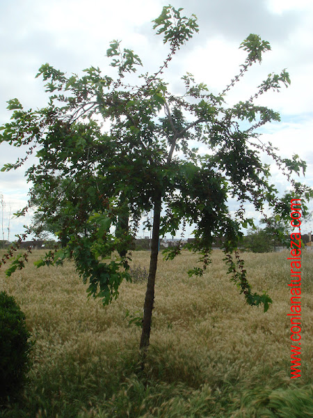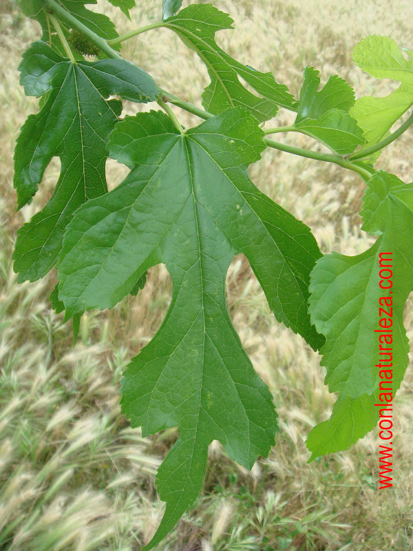 Hojas simples , polimorfas dentro del mismo árbol , divididas en grandes lóbulos, de bordes aserrados