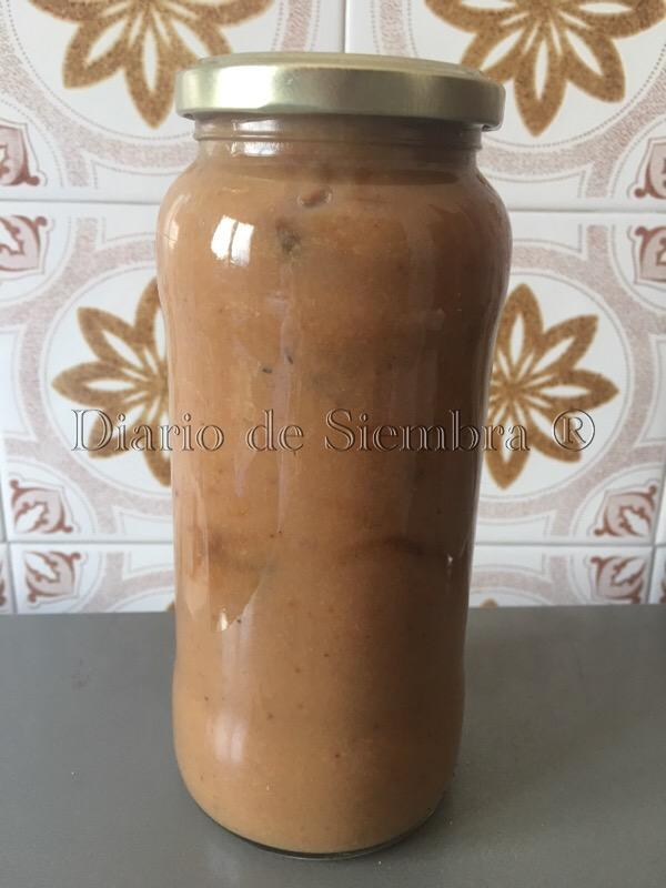 Cuando paso más o menos un cuarto de hora, la mezcla era bastante homogéneos y de textura de mermelada, así que apague el fuego y empecé a llenar botes de cristal.