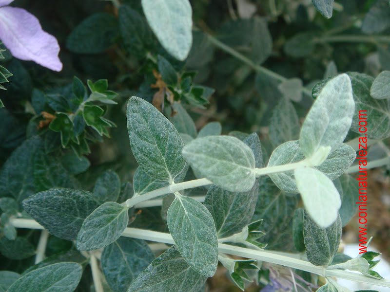 Hojas simples, aovadas, con disposición opuesta en las ramas. De color grisáceo