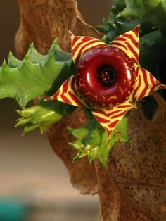 La particularidad de esta hermosa especie son sus flores, estas tienen forma de estrella plana, que se forman generalmente en la base de la planta en las especies más grandes, mientras que en las más pequeñas se localizan a una altura variable a lo largo de los tallos. Todas son peludas y varían en su olor desde agradable a carne en descomposición, de esta forma poder atraer a las moscas para su polinización.