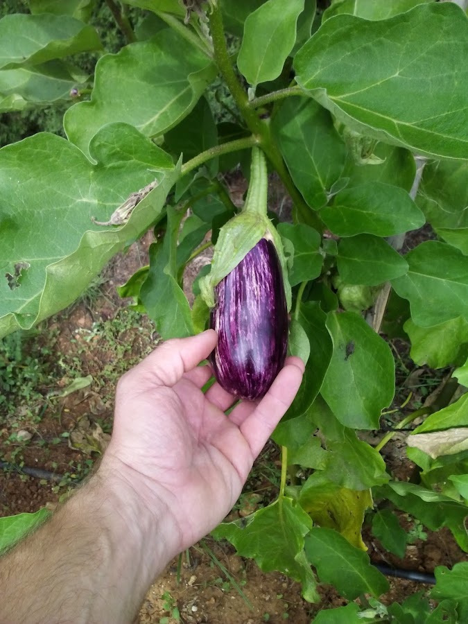 Por su parte, las berenjenas, también van saliendo unas cuantas de vez en cuando. Las plantas también presentan buen aspecto.