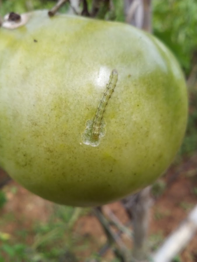 Gusano pillado in fraganti, disfrutando de un tomate del huerto orgánico...
