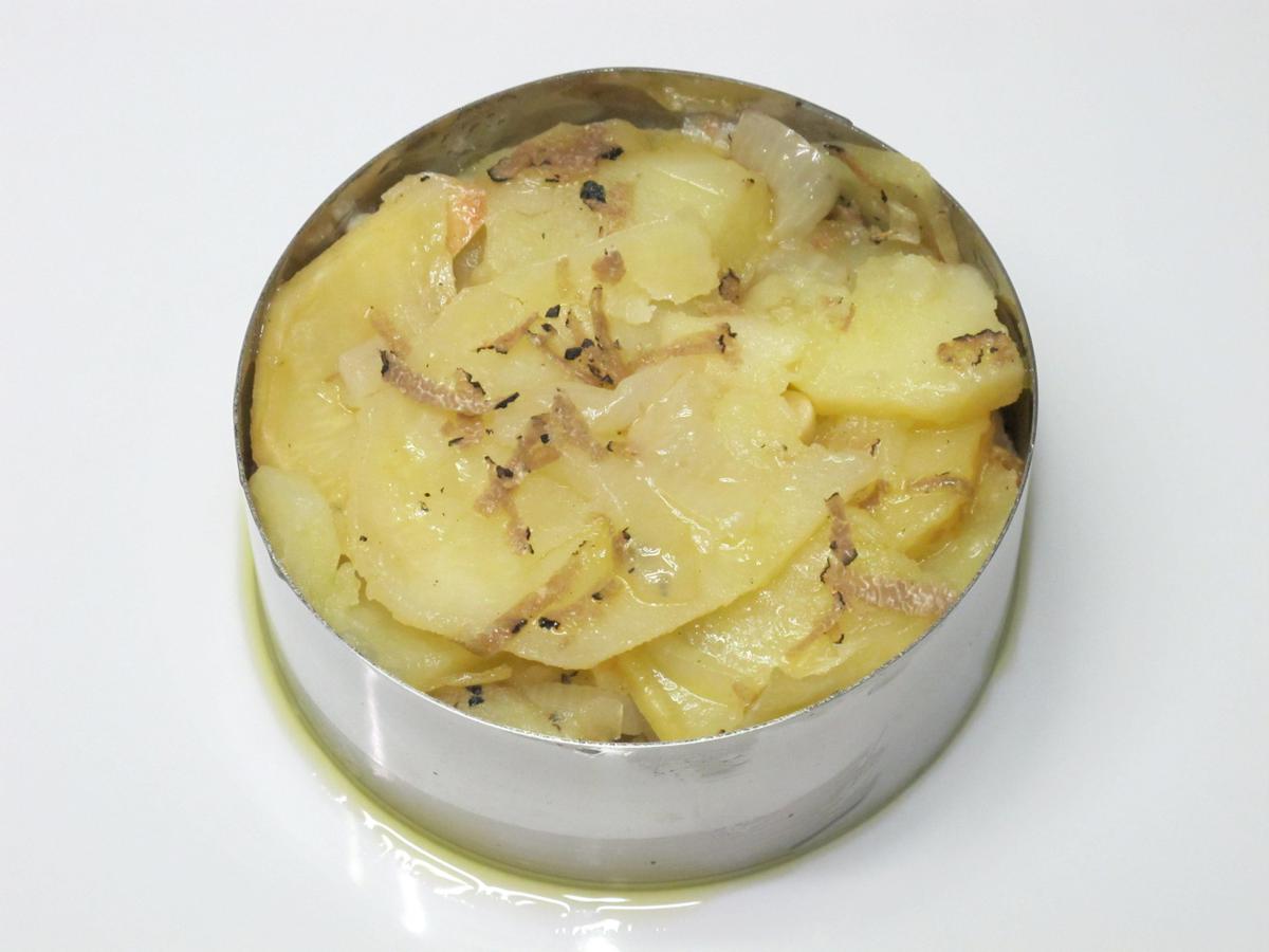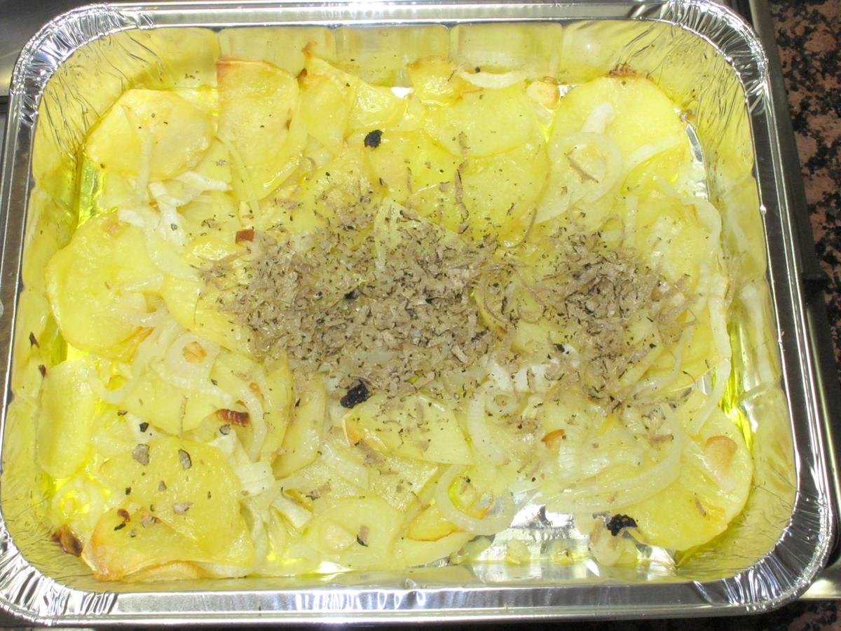 Sacaremos del horno las patatas panadera, y rallaremos finamente la Tuber aestivum por encima, y mezclaremos.