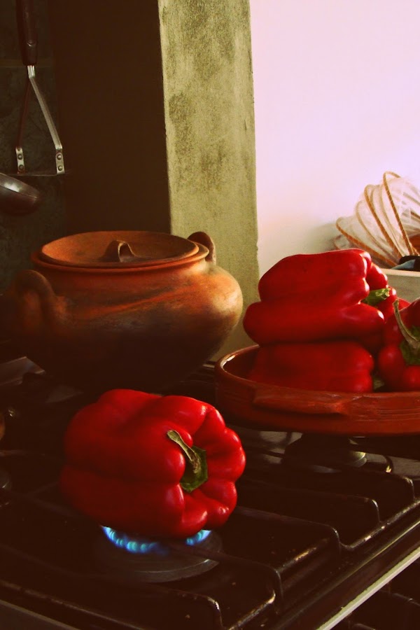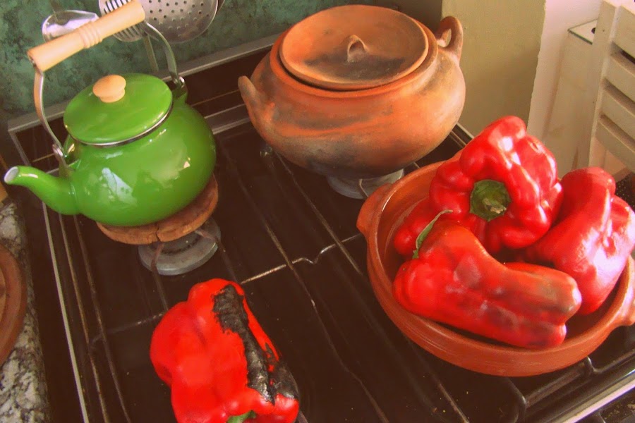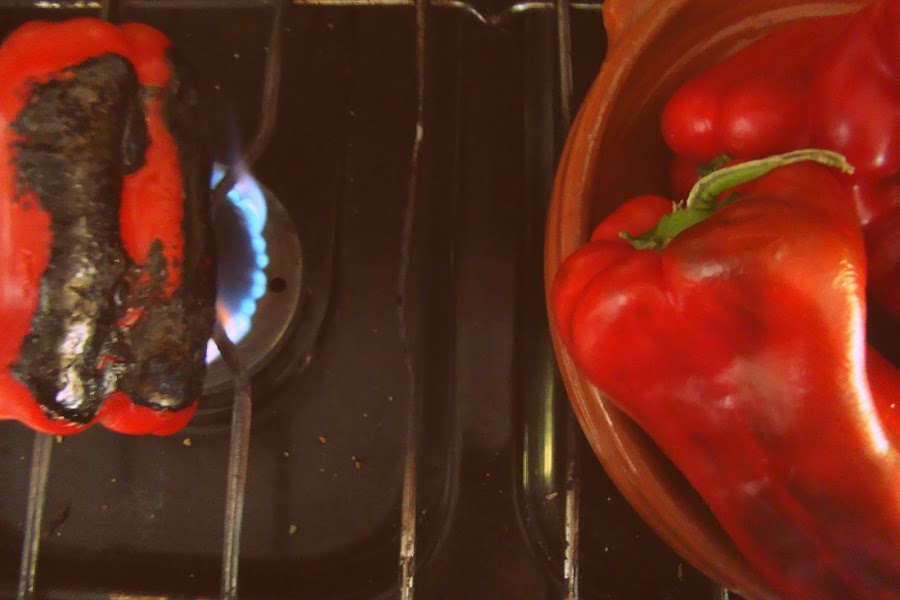 Los pones enteros sobre la hornalla encendida a fuego medio, y los vas dando vuelta, a medida que la piel se va quedando carbonizada!