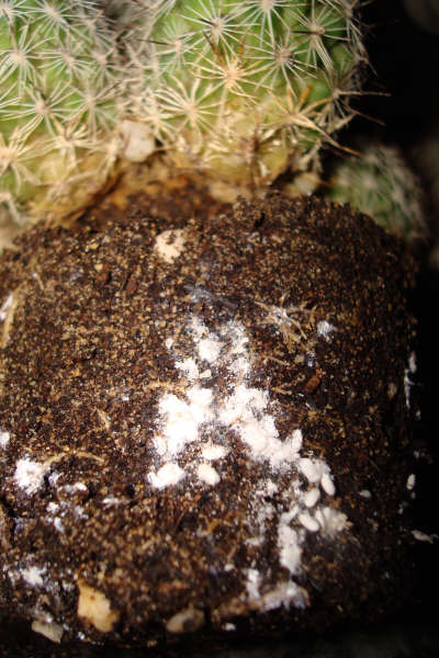 Cuando la planta haya perdido raíz, quite las raíces muertas y moje el mantillo con algún producto que contenga benomil. Luego trasplante la planta a un tiesto con una mezcla por mitades de arena y mantillo para cactus o solo arena pura y consérvela a 20ºC o más hasta que haya reproducido nuevas raíces sanas.