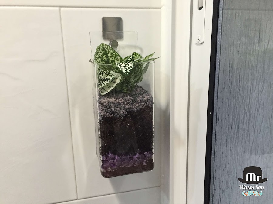 Pero es un jarrón bastante pequeño, así que pensé en utilizar gel de plantación para no tener que regar tan a menudo y encontré una Fittonia sp. variegada en blanco lo suficientemente pequeña para caber en el recipiente.