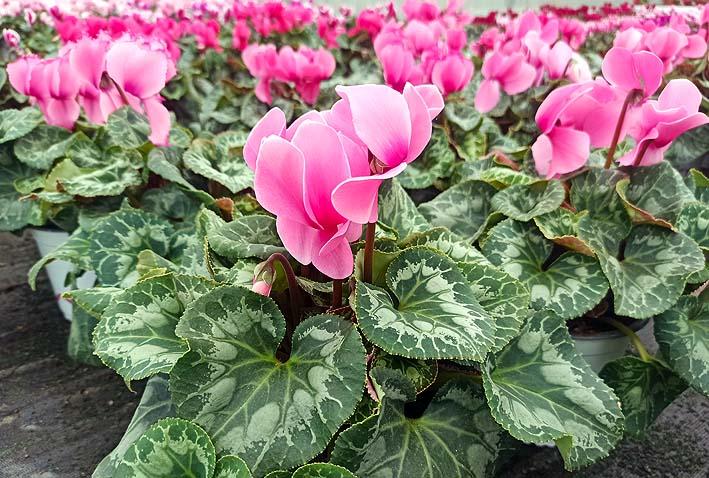 Azalea: Es un arbusto originario de los bosques de China y Japón. Le gusta estar en sitios luminosos a semisombríos, cálidos y húmedos. Necesita un riego abundante con agua no calcárea y un sustrato ácido.Ciclamen: Procede de los bosques del sur de Europa y del norte de África. Florece desde septiembre hasta abril coincidiendo con el otoño-invierno. Necesita un emplazamiento luminoso y fresco – frío. Como no soporta el calor, es preferible que en invierno se sitúe fuera de nuestro hogar para no tener que sufrir la sequedad y el calor que le produce la calefacción. En cuanto al riego, como es un tubérculo y puede pudrirse con exceso de agua, se recomienda mantener el sustrato húmedo pero aplicando el agua siempre en un plato situado debajo de la maceta y retirar el excedente de agua.