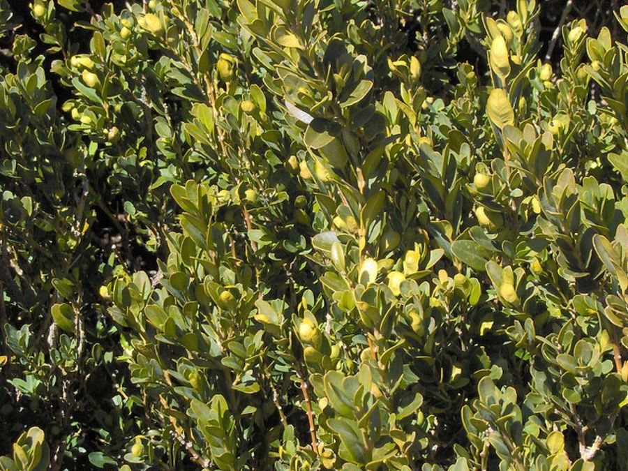 Florece a finales de primavera o principios de verano y se utiliza para crear setos bajos y borduras. Su madera es muy apreciada para fabricar formas escultóricas o gravados.