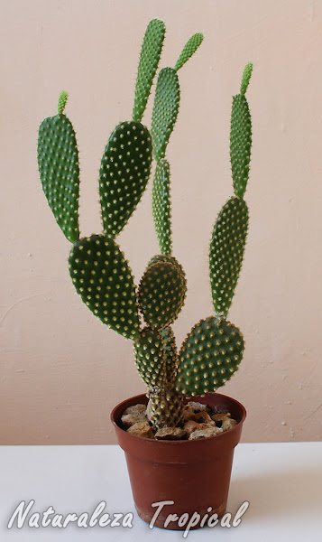Opuntia microdasys es un cactus muy popular por su belleza, resistencia y su rápido crecimiento. En la actualidad es posible tener tres variedades de esta especie: Con gloquidios amarillos, rojos o blancos. Esta especie se caracteriza por ser un cactus arbustivo (puede alcanzar más de 80 cm de altura) con abundantes ramificaciones, que presenta tallos aplanados y ovalados. Cada tallo está cubierto por numerosas areolas que contienen un gran número de gloquidios.