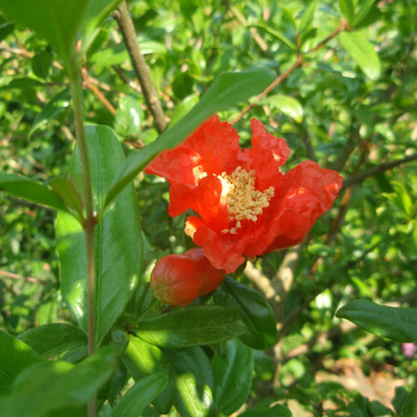 El granado es un arbusto frondoso de un gran efecto ornamental que si no se poda, puede llegar a alcanzar alturas y volúmenes considerables.