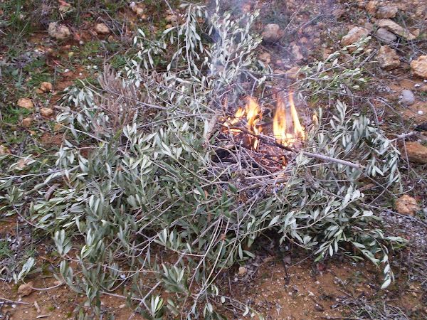 Quema de restos de poda de olivos.