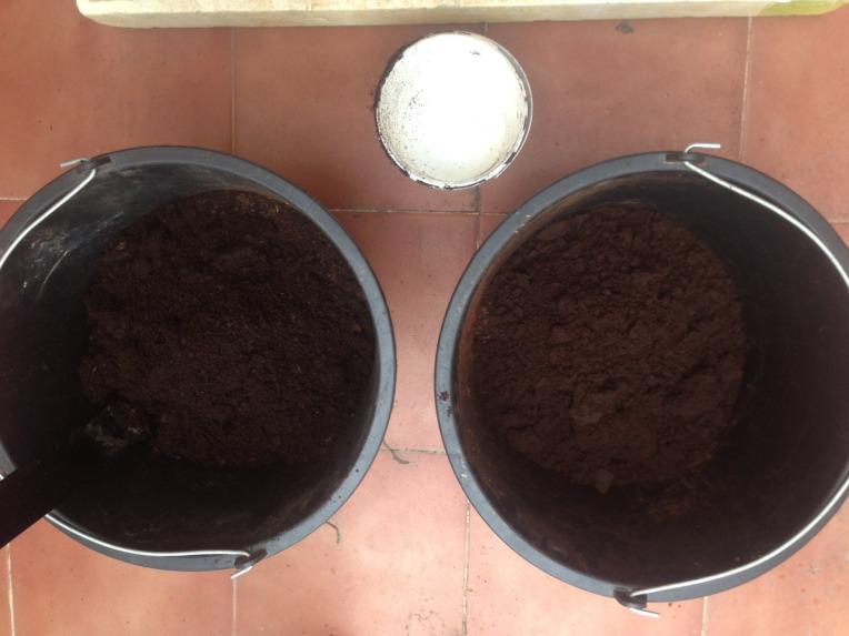 Preparamos la mezcla a razón de 10 kg de tierra y un kilo de posos de café.