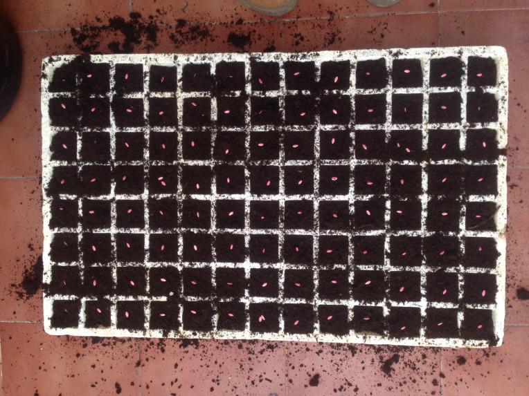 Posteriormente depositaremos una semilla por alveolo ( dos en el caso de que una de las semillas se vea débil), de manera centrada y en posición horizontal, para que nos sea mas fácil ver en que alveolos hemos dejado una semilla.