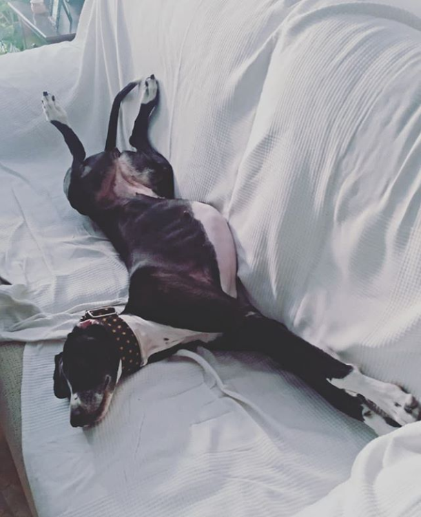 Esta es Dakota, un bebe en un cuerpo gigante adorable y que todo el dia está dando besos y buscando caricias, o durmiendo en el sofá, que es suyo por cierto jeje..