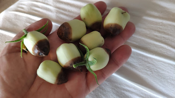 La horticultura no es lo mío, precisa demasiados cuidados. Y demasiada agua! En la última foto veis los tomatitos afectados por la enfermedad "de la peseta", algo que de aparecer, lo llevas claro, no se pueden salvar.