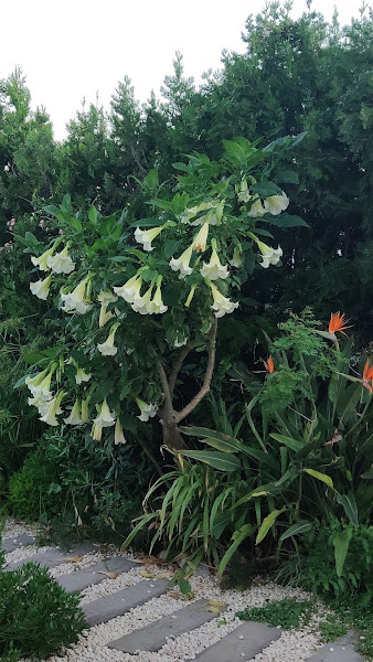 Trompetas color crema-verde gigantes de la Brugmansia