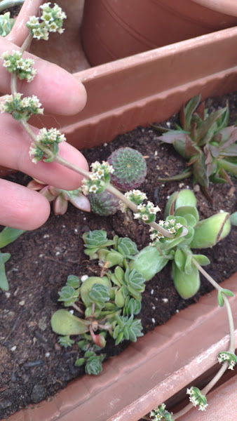 Flor monísima y diminuta de una suculenta que no recuerdo nombre y un color precioso que no se aprecia bien en foto