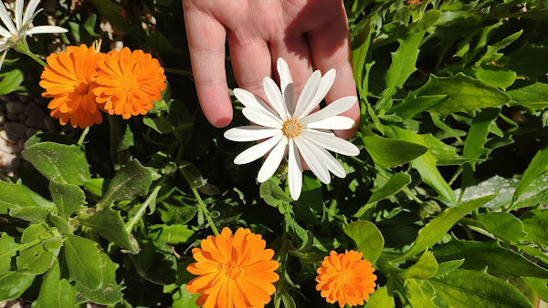 Osteospermum blanco con caléndulas