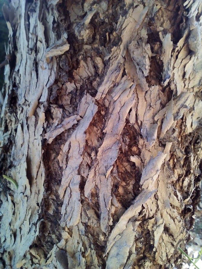 En la imagen se puede apreciar el aspecto de la corteza; agrietada, se desprende con facilidad, de hecho, suele ir soltado trozos y renovando continuamente.