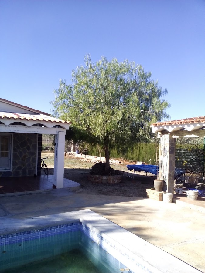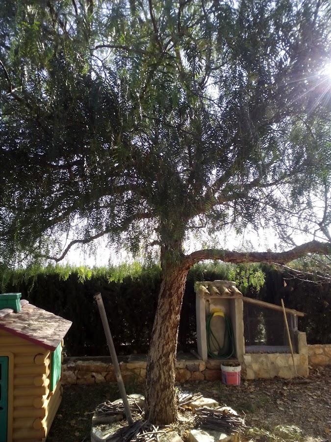 Nosotros contamos en el Huerto con dos ejemplares de falso pimentero (Schinus molle). Los adquirimos como árboles ornamentales, nos gusta su porte llorón, y como árboles de sombra.