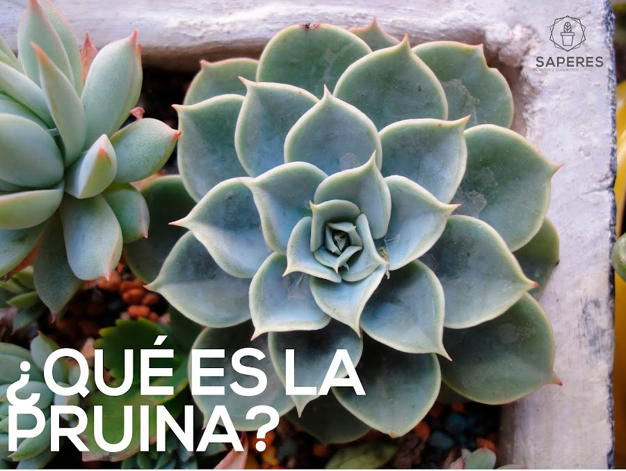 La pruina es ese polvito que recorre toda nuestra suculenta, generalmente lo observamos cuando tocamos la planta y queda reflejada nuestra huella. Esta es una especie de cera natural que protege nuestra planta de los rayos intensos del sol, además de ayudar a que la planta no se quede sin agua en sus hojas, en fin, es muy importante para nuestras suculentas.
