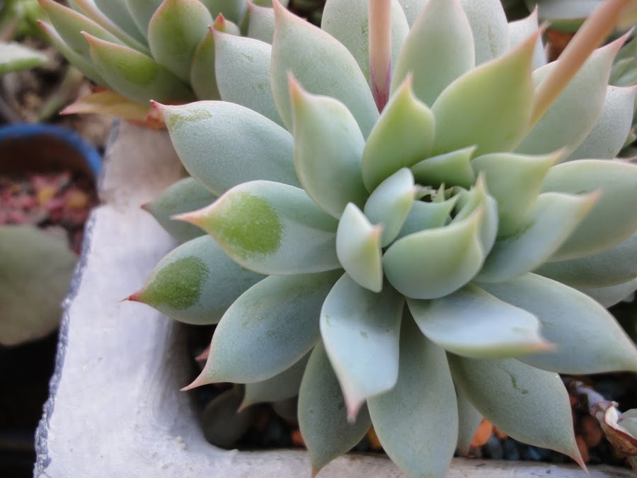Por lo tanto, si vas a limpiar una echeveria que es la especie que generalmente tiene grandes cantidades de pruina, hazlo siempre y cuando sea muy necesario, ya sea: por telarañas, por barro pegado, babosas, en fin algo que sea realmente necesario. De resto, no quites la pruina de tu suculenta.