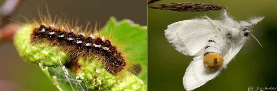 Ataca muchas especies, aunque es frecuente en Olmos, Quercus y Arbutus. Es una mariposa con cuerpo y alas de color blanco y las orugas tienen pelos urticantes peligrosos para las personas.