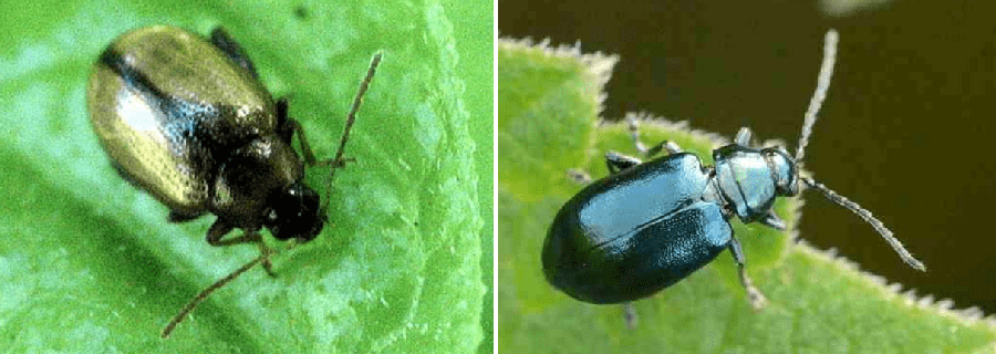Pequeños escarabajos como Psylliodes sp., Haltica sp. y otros