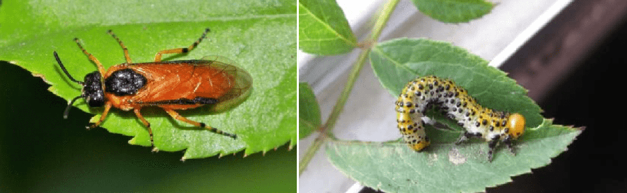 Pueden alimentarse del follaje del rosal y de otras rosáceas.