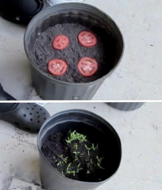 Para cultivar tomate planta algunas rodajas de éste en composta y en pocos días verás brotar las plantitas.