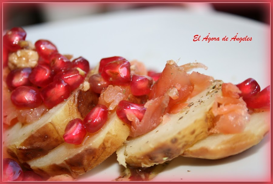 Y otra alternativa genial es la que propone El Ágora de Ángeles con la Ensalada de patata y salmón ahumado con vinagreta de granada