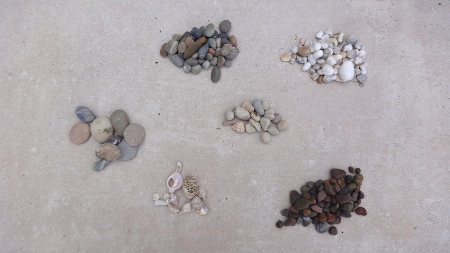 Como conseguí piedritas en diversos colores, las separe para colocarlas en la superficie según su color