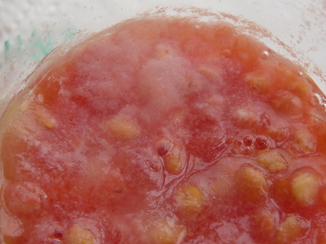 3. En unos vasos de cristal pongo las semillas junto a su pulpa y los dejo hasta que una capa de moho recubra dicha mezcla. Esto puede parecer un poco asquerosito, pues no solo cometemos un crimen sino que además convivimos con la victima hasta que se apolille pero en realidad lo que hacemos es protegerla de posibles bacterias mientras las semillas estén guardadas esperando su vuelta a la vida.