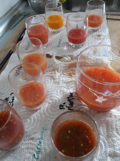 1. Escojo los tomates que dentro de las posibilidades se encuentren en los parametros normales en cuanto a tamaño, es decír ni grandes ni pequeños. Hay quien dice que es mejor escoger las semillas de los primeros frutos porque éstos son mas fuertes y la calidad de las semillas es mejor, pero yo lo que busco principalmente es que a los frutos les haya dado tiempo a adaptarse un poco a las condiciones climaticas de mi zona que es el el principal motivo por el cual decido recolectar mis propias semillas, huelga decír que también lo hago por ahorrar costes de producción (así queda más profesional y no quedo como un tacaño)