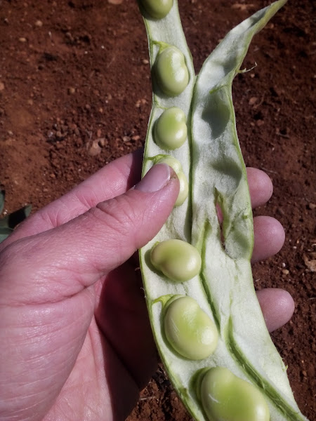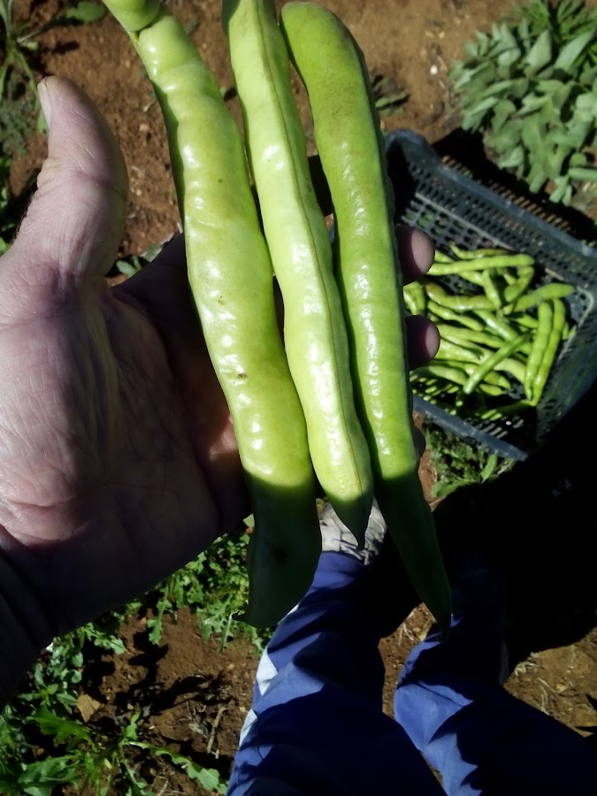 Solemos recolectar una primera cosecha de habas tiernas, es decir, cuando aún son pequeñitas, la vaina no está muy desarrollada y el haba está muy blandita y tierna. Nos encantan con revuelto o salteadas con ajetes. Espectacular.