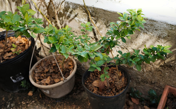 Nuevas plantas de limón amarillo. (El que se vende en los supermercados) Este fue un experimento ya que lo había intentado antes y las semillas no se dieron. La planta mas grande es de limón verde de Puerto Rico. Tengo que cambiarlas pronto a otro tiesto.