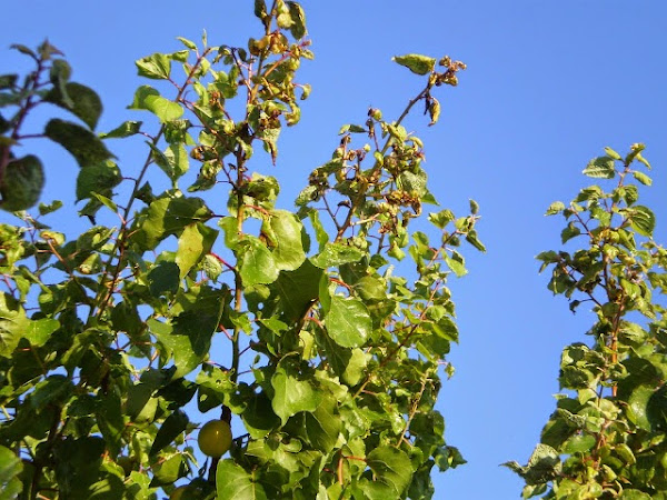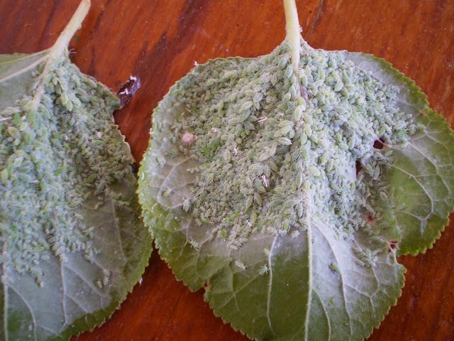 Pulgones celebrando un banquete a costa de las hojas de albaricoque