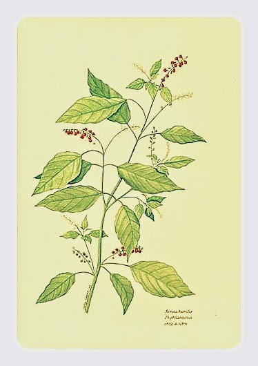 De hojas alternas, puntiagudas, con el margen a veces ondulado, de color verde brillante, a veces con pelillos.Presenta racimos de flores con tepalos, en la punta de los tallos o en las axilas de las hojas, de hasta 16 cm de largo, y alargándose al presentarse los frutos, generalmente cubiertos de pelillos.