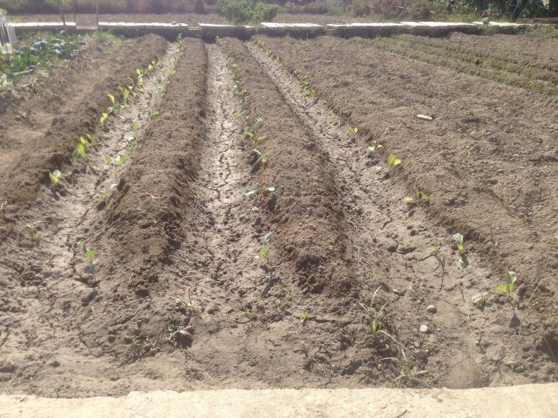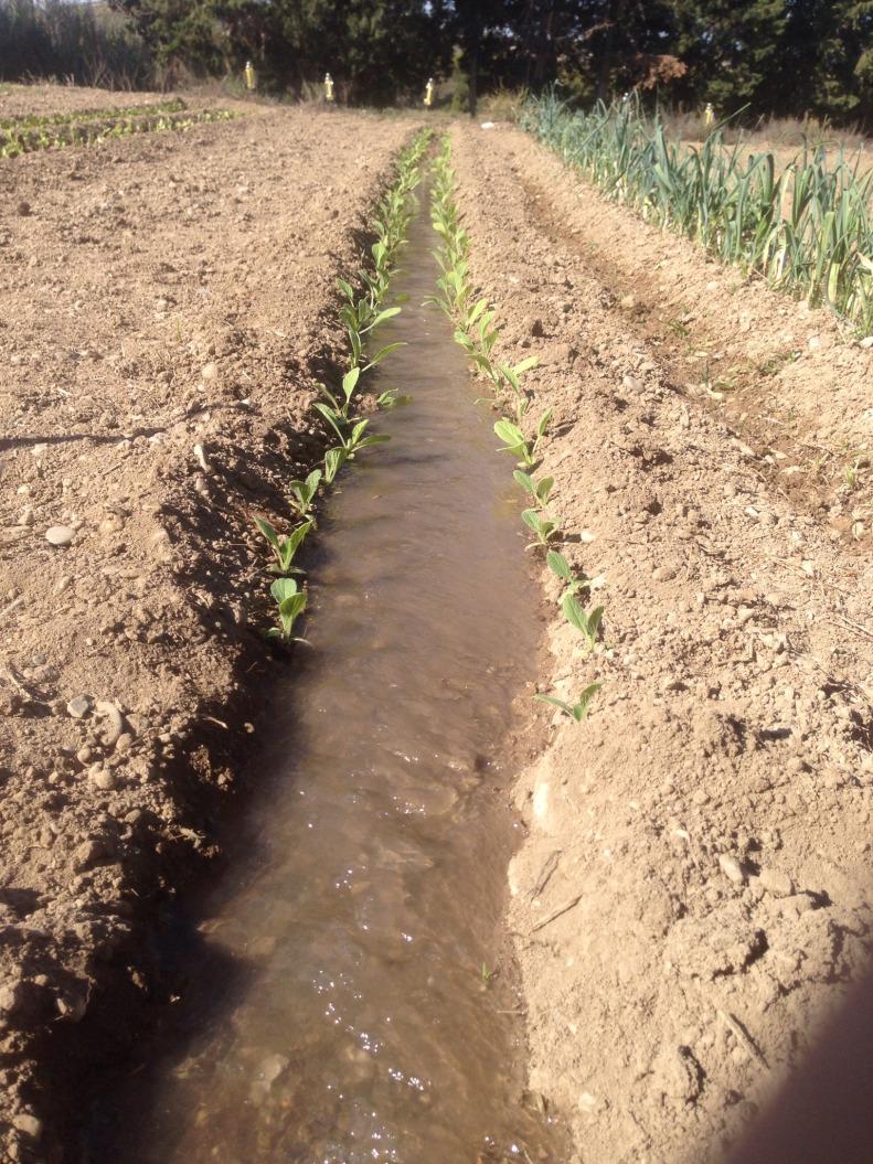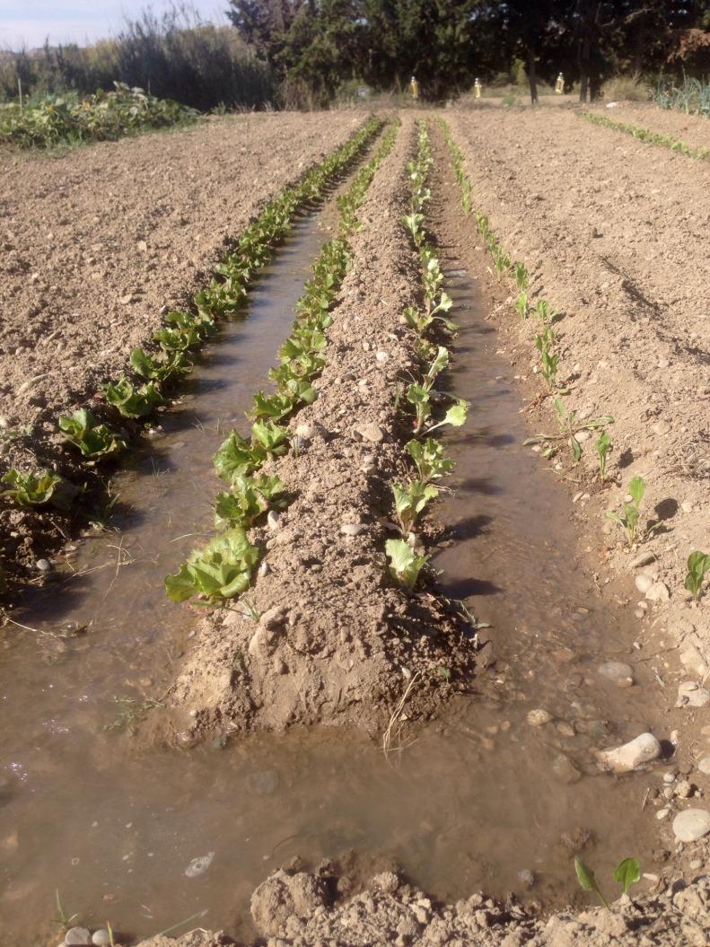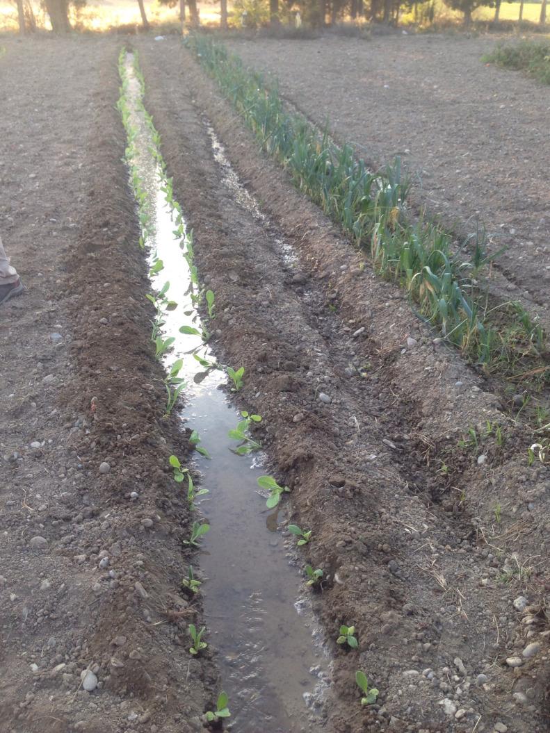 El día que lo sembramos le dimos el primer riego, y 2-3 días después le daremos el segundo riego.Consejo de uno de mis abueletes que tiene la verdura más bonita de los alrededores.