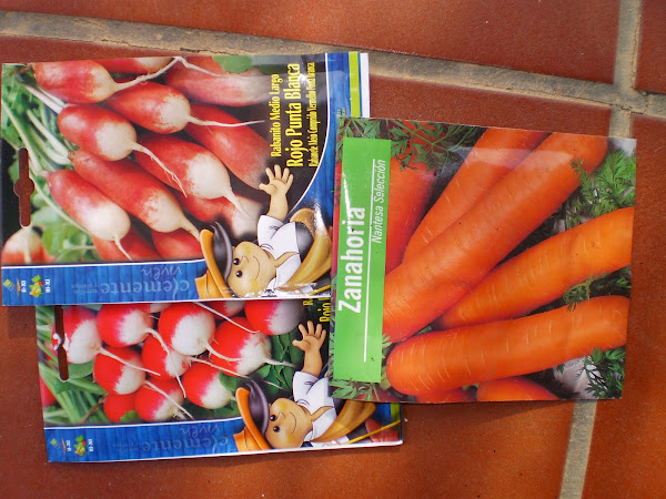 Los rábanos y las zanahorias se asocian de manera positiva. Es aconsejable intercalar ambas plantas ya que los rabanitos normalmente, tienen un crecimiento rápido y las zanahorias tienen un ciclo de desarrollo mayor.Las semillas son de compra. Estás son del año pasado y en el envase pone que pueden durar varios años antes de sembrarlas.
