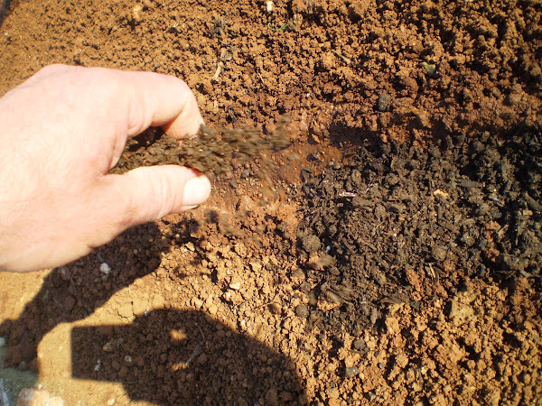 Una vez regada la zona procedemos a verter las semillas con los dedos tratando de que queden bien esparcidas y no se amontonen demasiado, de esta manera evitaremos demasiados aclareos una vez vayan brotando.
