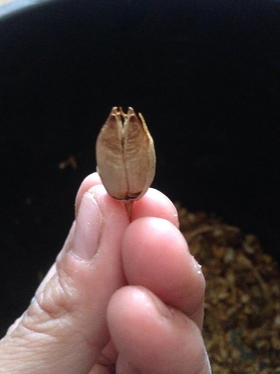 Para conseguir las semillas,cogeremos una de las cápsulas con los dedos, dejando la punta redondeada en la parte inferior.
