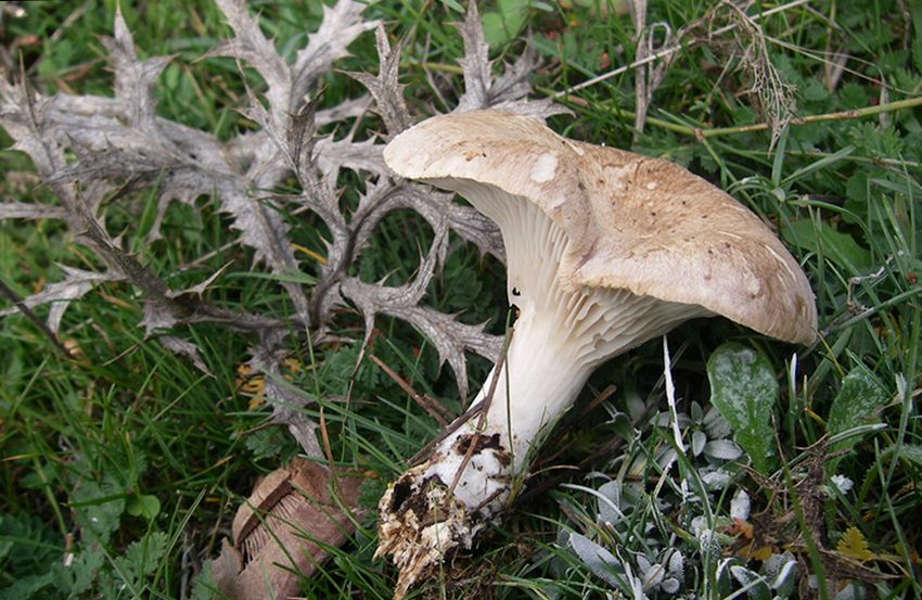 La principal característica de la seta de cardo es que es saprófita y vive asociada a esta planta, el cardo cuco o cardo silvestre, Erygium campestre. Se le conoce también como cardo corredor por la manera que tiene de propagarse por el monte una vez seco, rodando con el viento, esparciendo las semillas y colonizando nuevas zonas. En ocasiones podremos encontrar setas de cardo sin encontrar ninguna planta cercana. Pero podemos estar seguros de que la ha habido y seguramente se ha desprendido y rodado, dejando sus raíces muertas para nutrir a las setas.