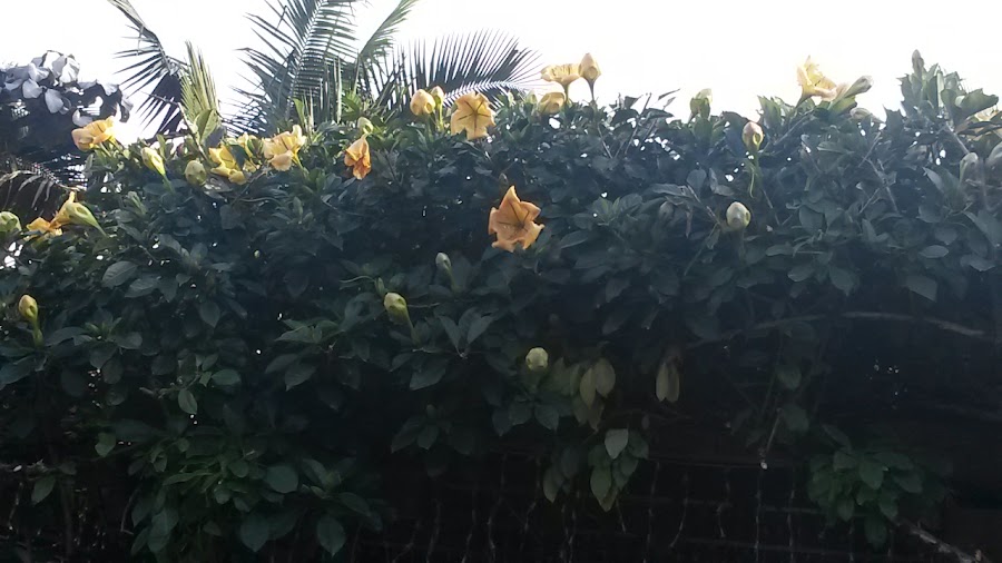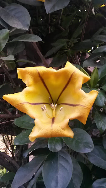 Nombres comunes : Solandra nítida, cáliz, copa de oro, copa dorada, trompetero gigante, chalice vine, cup of gold vine.
