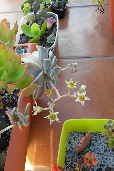 Aquí dejo fotos de una serie de echeverias, pachyphytums, sedum, graptopetalum y otras suculentas que han florecido esta primavera.