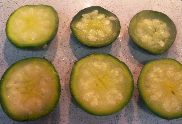 Los calabacines luna ya hervidos y esperando a que se enfrien para poder manipularlos y quitarles su pulpa.